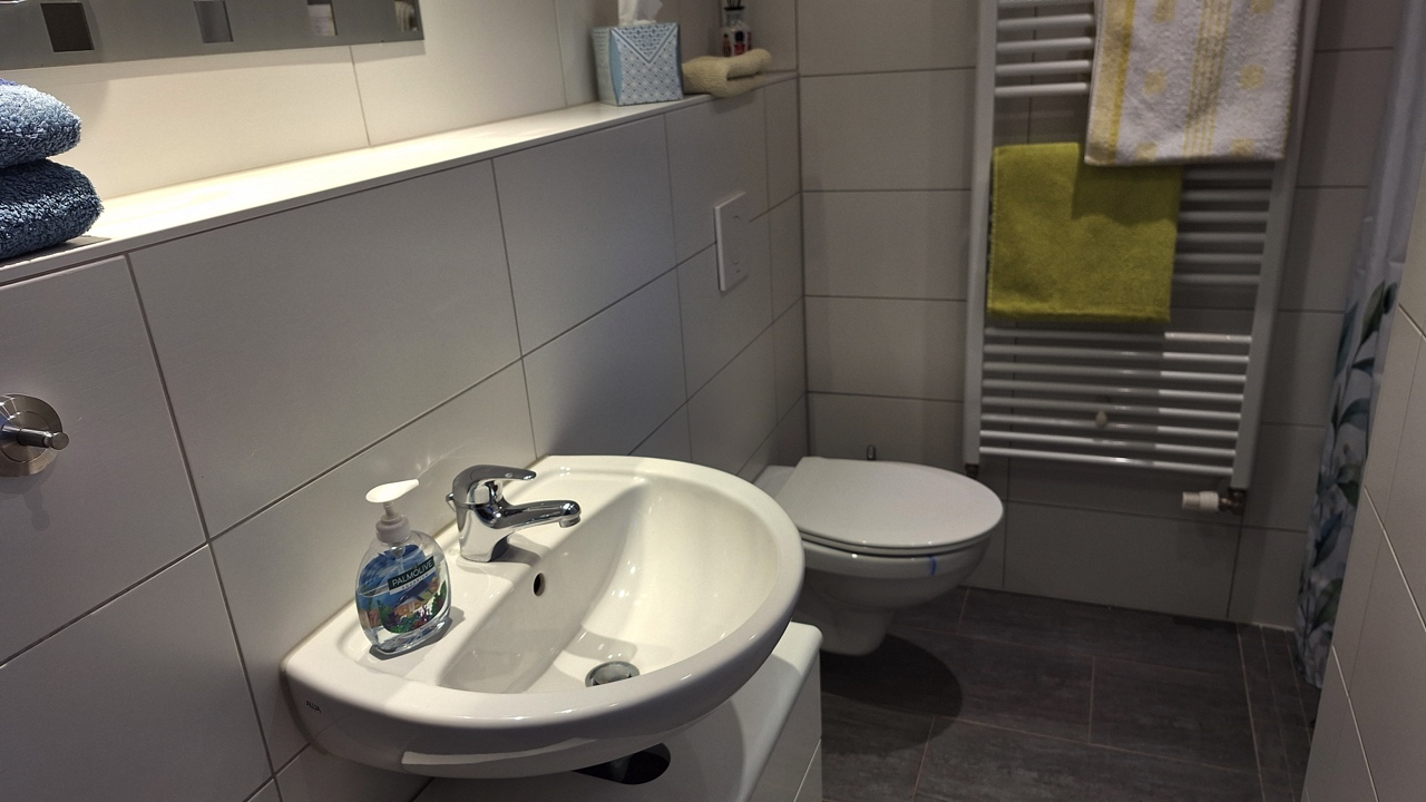 - Bad mit WC, barrierefreie Dusche und Fußbodenheizung, Fön,