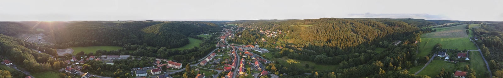 eingebettet ins idyllische Tal der Wipper. Die angrenzenden Berge sind bis zu 400 m hoch und mit Laub- und Nadelwald bewachsen.