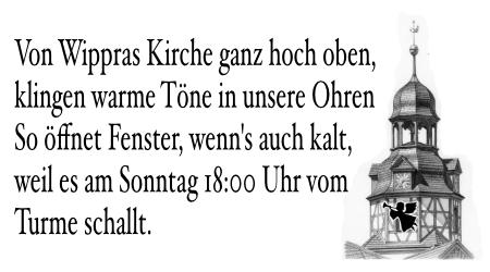 - Ulli Dockhorn und Freunde (Königeröder Blasmusikanten) trompeten auf dem Kirchturm in Wippra bei Würstchen und Glühwein ab 18:00 Uhr