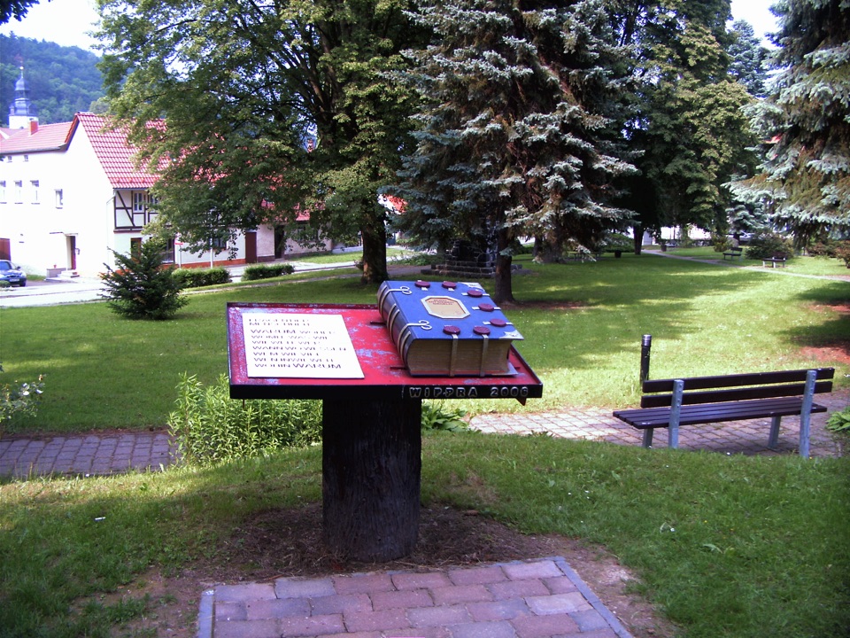 Eine der zahlreichen Attraktionen des Erholungsortes Wippra befindet sich ortszentral auf dem Schieferhausplatz. Hier beginnen wir unsere Wanderung in Richtung Bahnhofstraße. In der Parkanlage steht das „Buch mit sieben Siegeln“. In das Buch wurde eine versiegelte Kartusche eingelegt, die freundliche, geheime Nachrichten und Botschaften an die Zukunft beinhaltet. Zum 40. Jahrestag der Deutschen Einheit soll diese feierlich geöffnet werden. Die Wanderung geht weiter durch den Park zum Kneippbecken. Nach einer Kneippkur geht es entlang der Bahnhofstraße in Richtung Rodelbahn mit den Attraktionen Kletterfelsen, Kletterpark und Abenteuerspielplatz. Zurück wandern wir über den Dr.-Gerd-Jacob-Weg durch die Fleckstraße zum Museum und vorbei an der Kirche Sankt Marien. Entlang der Bottchenbachstraße schließt sich der Rundwanderweg an der Museumsbrauerei.