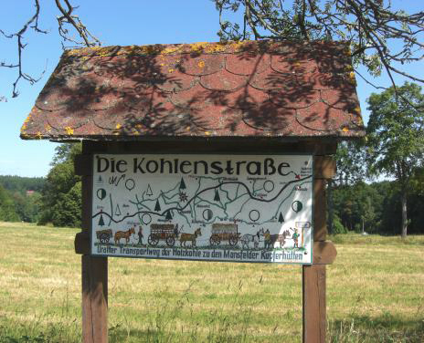 Der Kohlenweg führt durch das ausgedehnte Waldgebiet südlich von Wippra. Auf der Kohlenstraße wurde einst die Holzkohle aus den Harzer Wälderzu den Mansfelder Hütten transportiert.